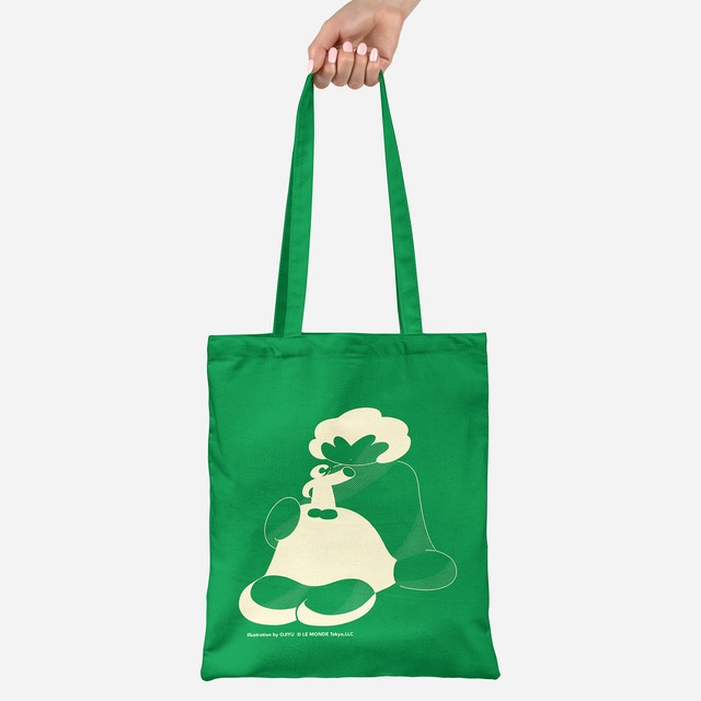 ギャラリールモンドでオリジナル・トートバッグを制作しました。 OJIYUさんにイラストレーションを描きおろしていただきました。 https://www.instagram.com/ojiyu_0/ 持ち手が長めでレコードジャケットが綺麗に収まるサイズで、小さく折りたためるマチなしトートバッグです。 カラー:ケリーグリーン サイズ:H420×W380mm(持ち手の長さ:670mm) 綿100%/4.1オンス/ライトウェイトトートバッグ