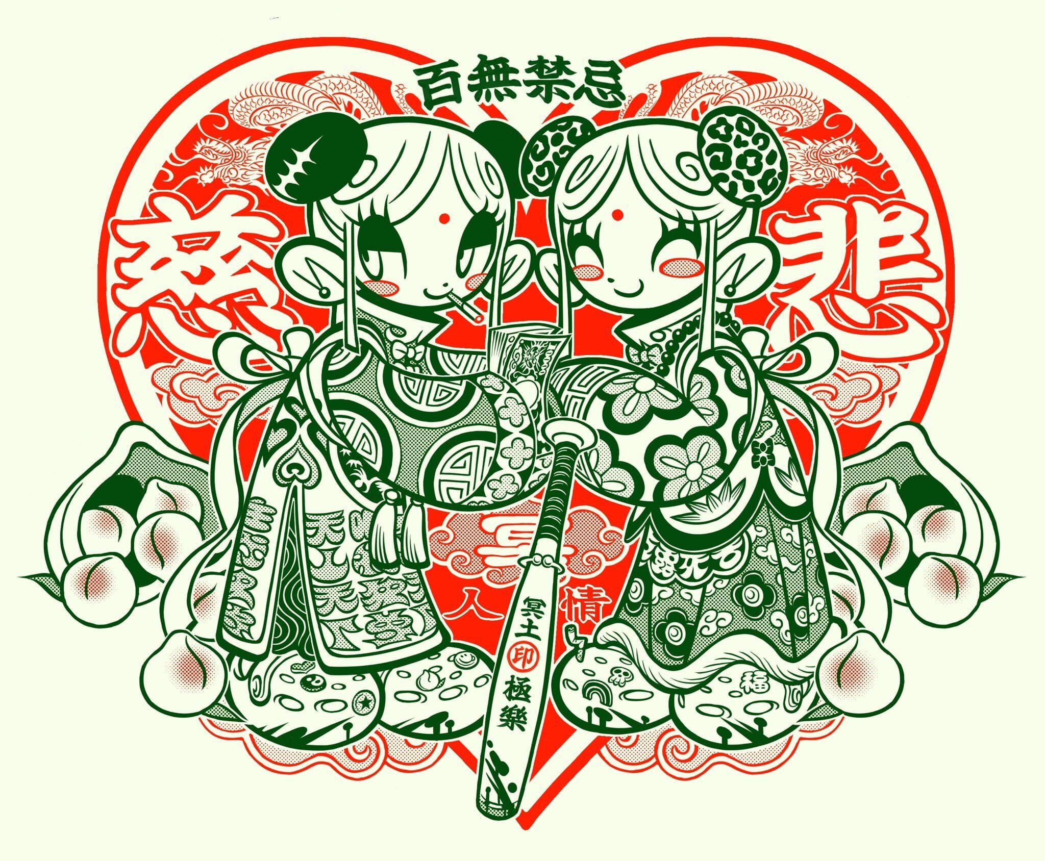 本展は初作品集「萬事満福」(グラフィック社)の発売記念展示となり、新作の他にもこれまで制作してきたリソグラフ作品やキャンバス作品、そして52TOYSからリリースされたソフビ人形の展示を行います。