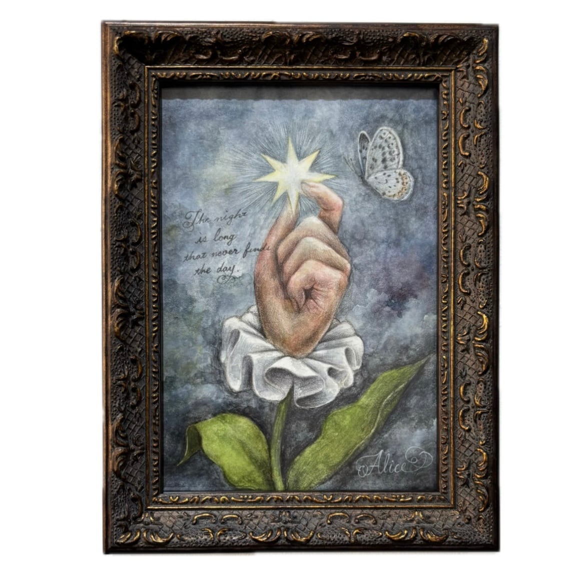時田アリス ミニ原画「The night is long that never finds the day」(額装込)