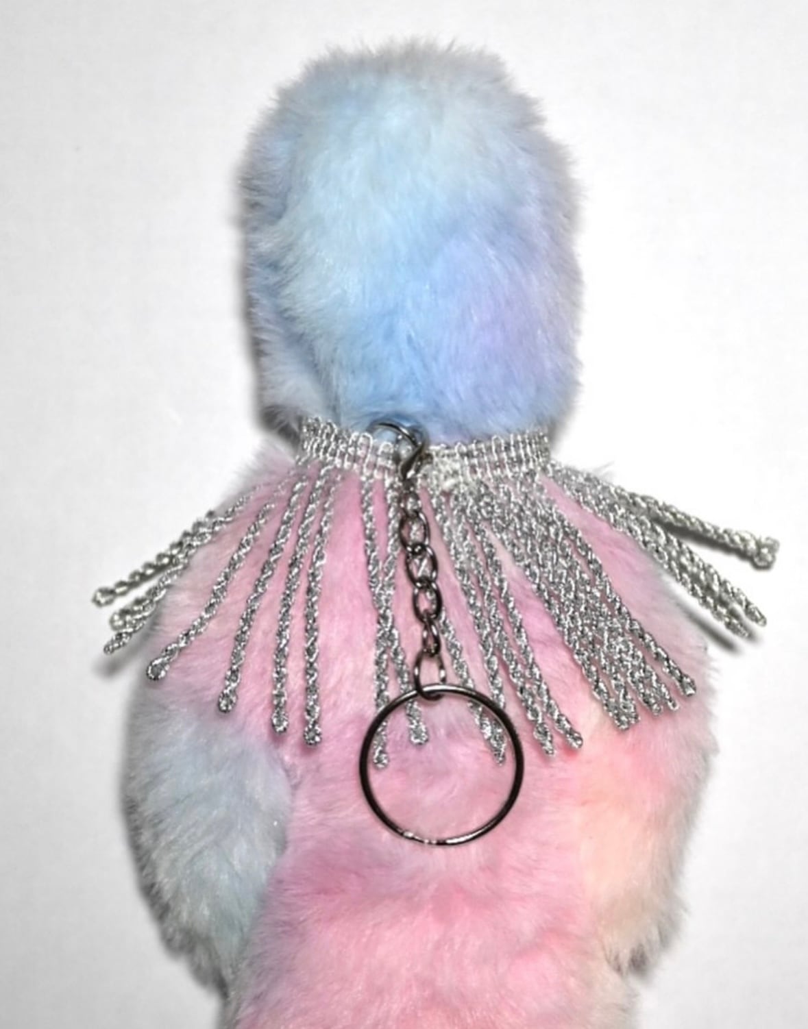 ファー製で、首、オフショルダーのフリンジは取ることもできます。