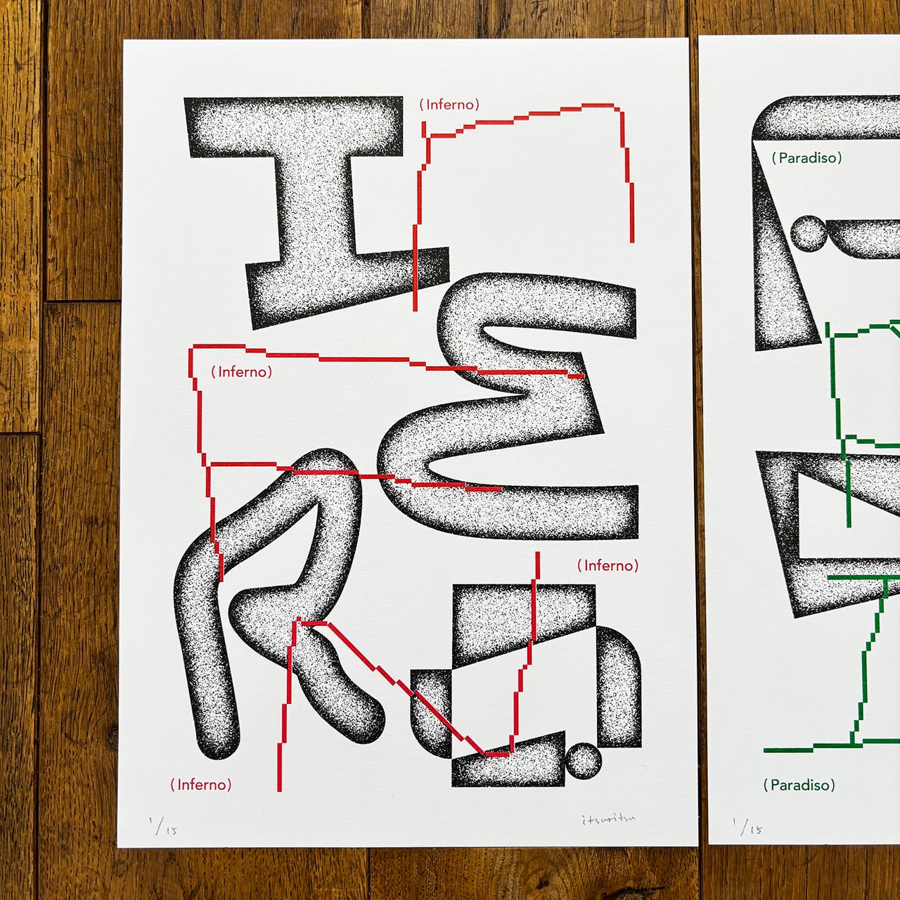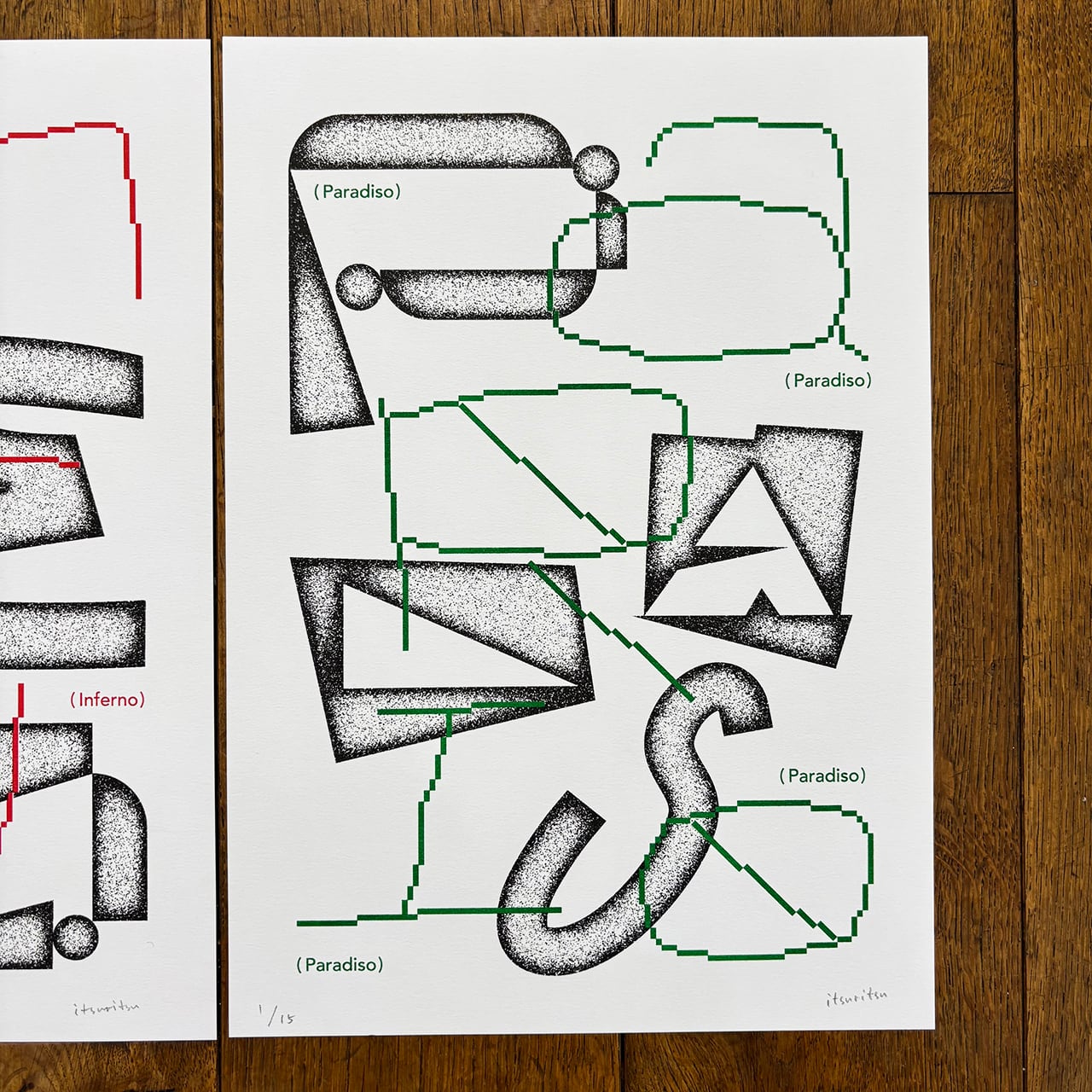 リソグラフとは、シルクスクリーン印刷やガリ版と同じ原理を基にしたデジタル孔版印刷で、スクリーン状の版に微細な孔(あな)を開け、そこからインクを用紙に押し出す印刷方法です。半水性のインクを使用するため、掠れたり色ムラが出たり、重ね塗りをしたようなアナログ感と味わいある仕上がりが魅力です。
