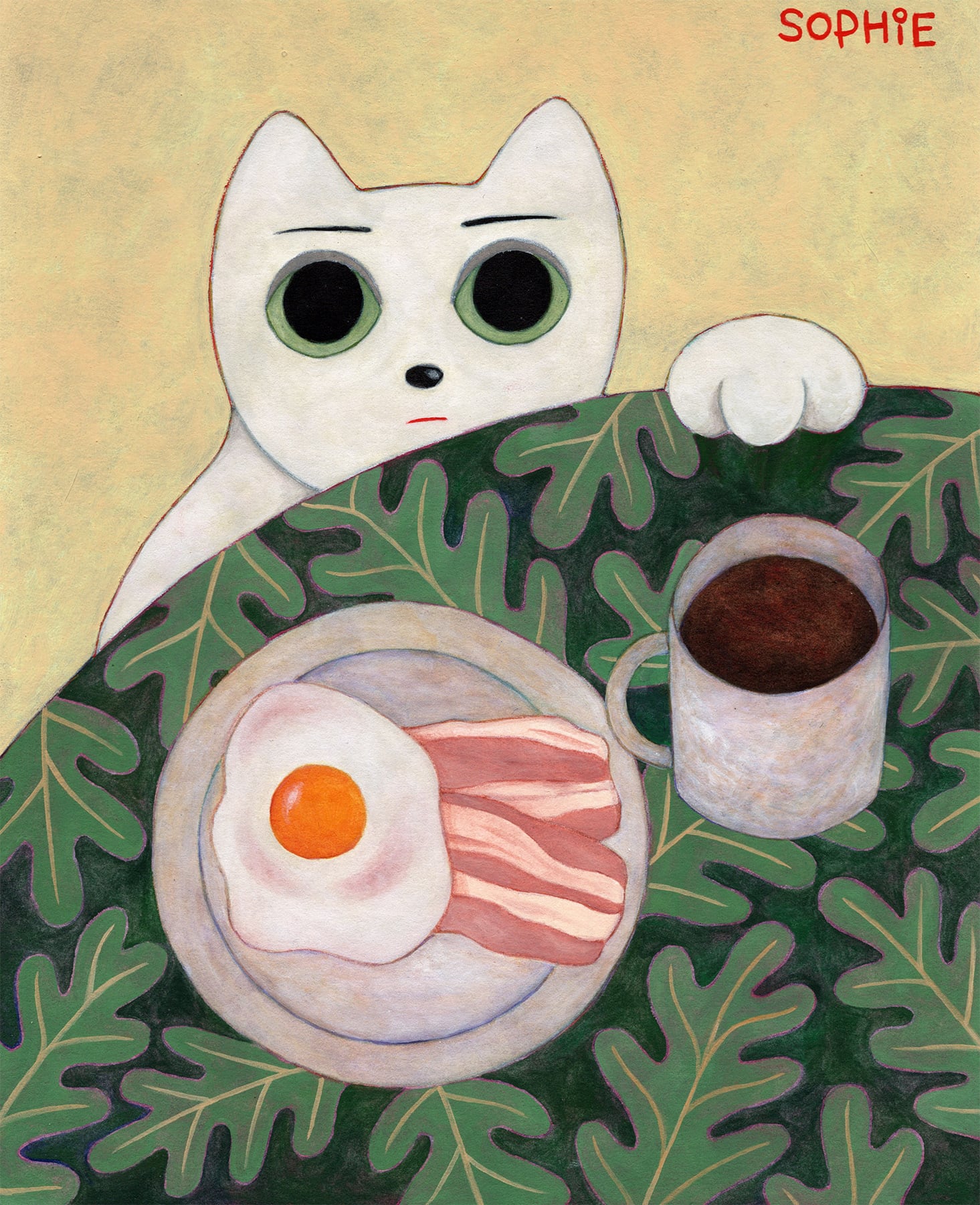 増田ソフィ 額装原画「朝食の時間」(額装込/送料込)