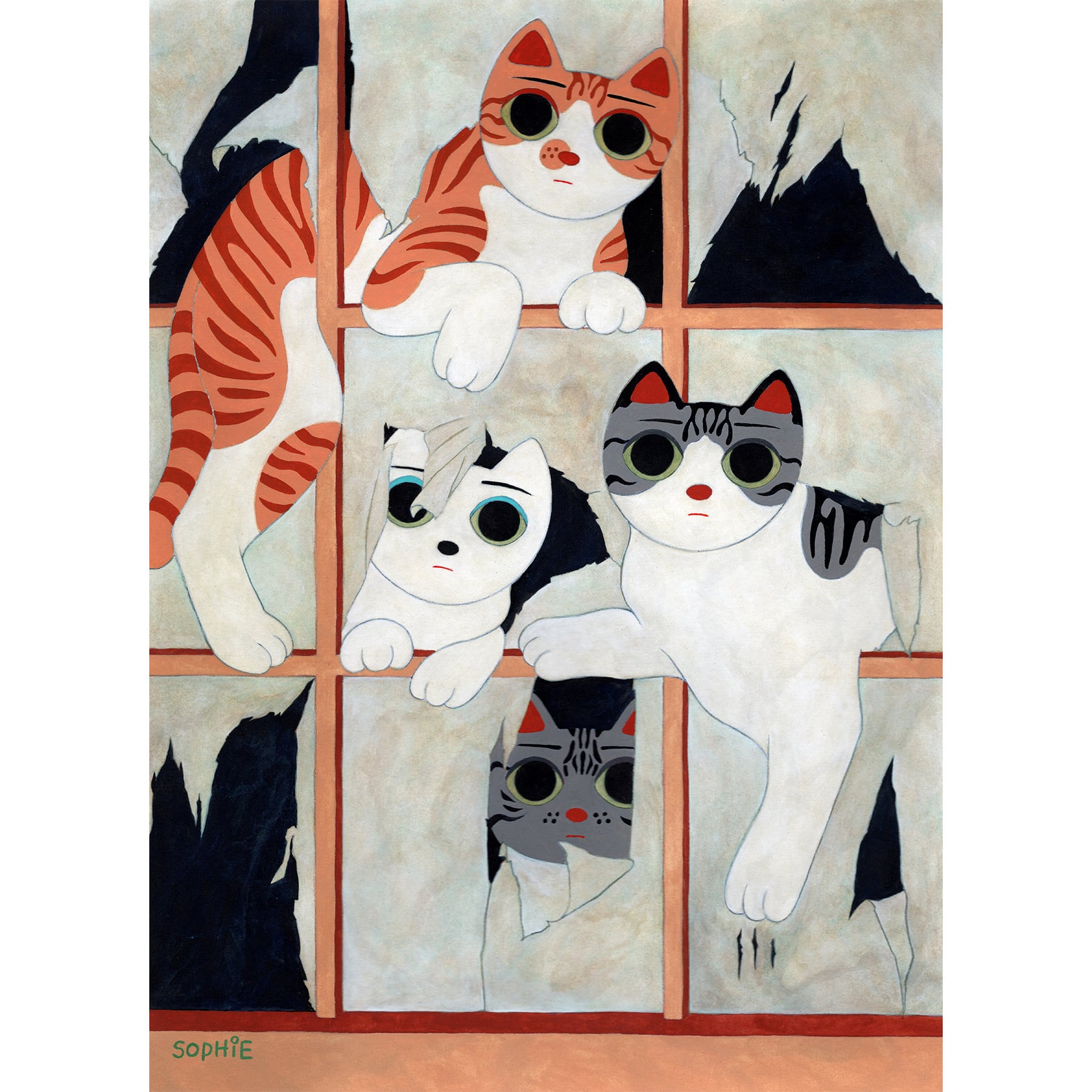 2026年3月10日(火)から15日(日)まで個展「ミャオミャオ展」を開催中の増田ソフィさんの額装作品です。