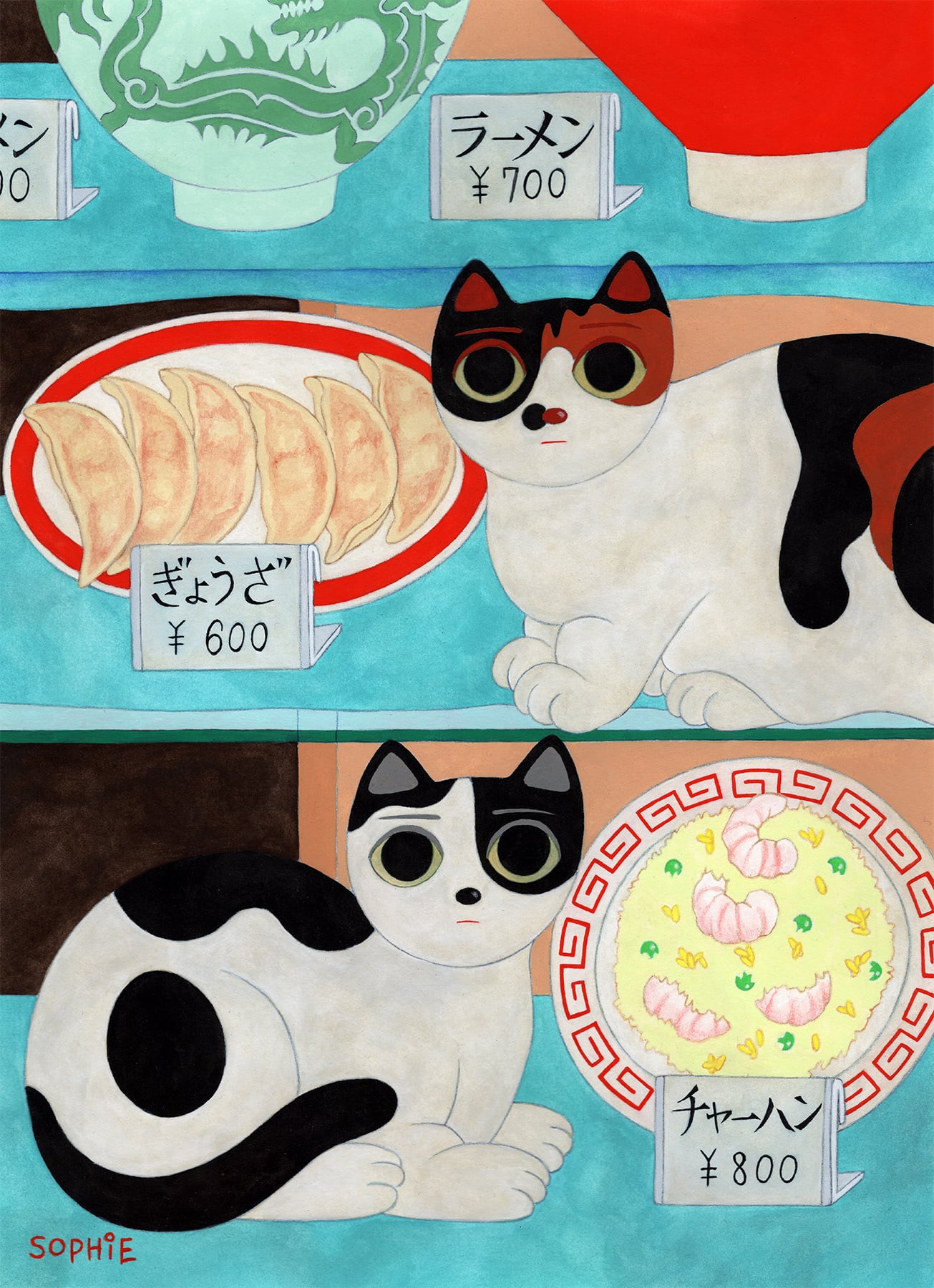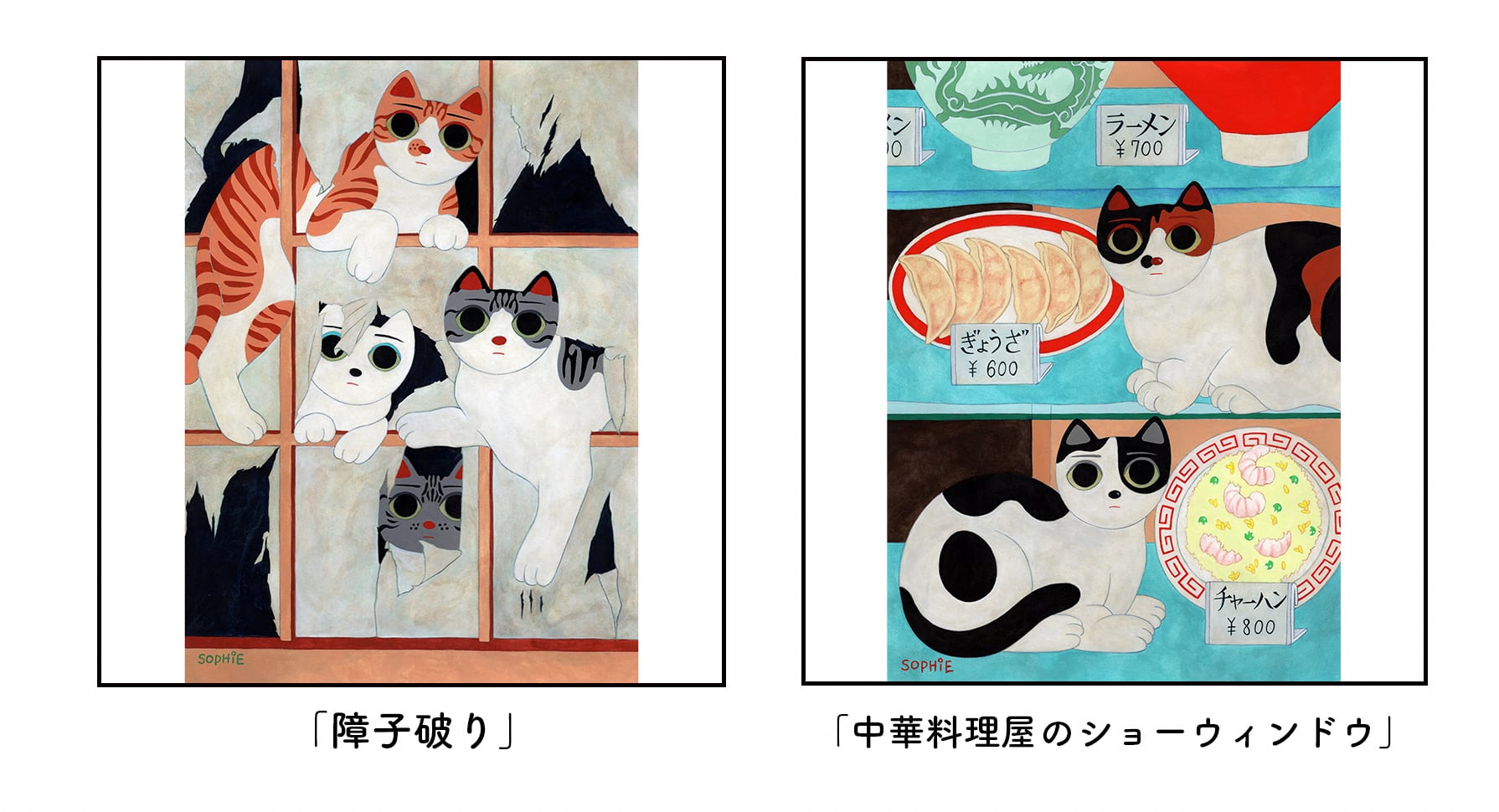 増田ソフィ 額装原画「障子破り」「中華料理屋のショーウィンドウ」(額装込/送料込)
