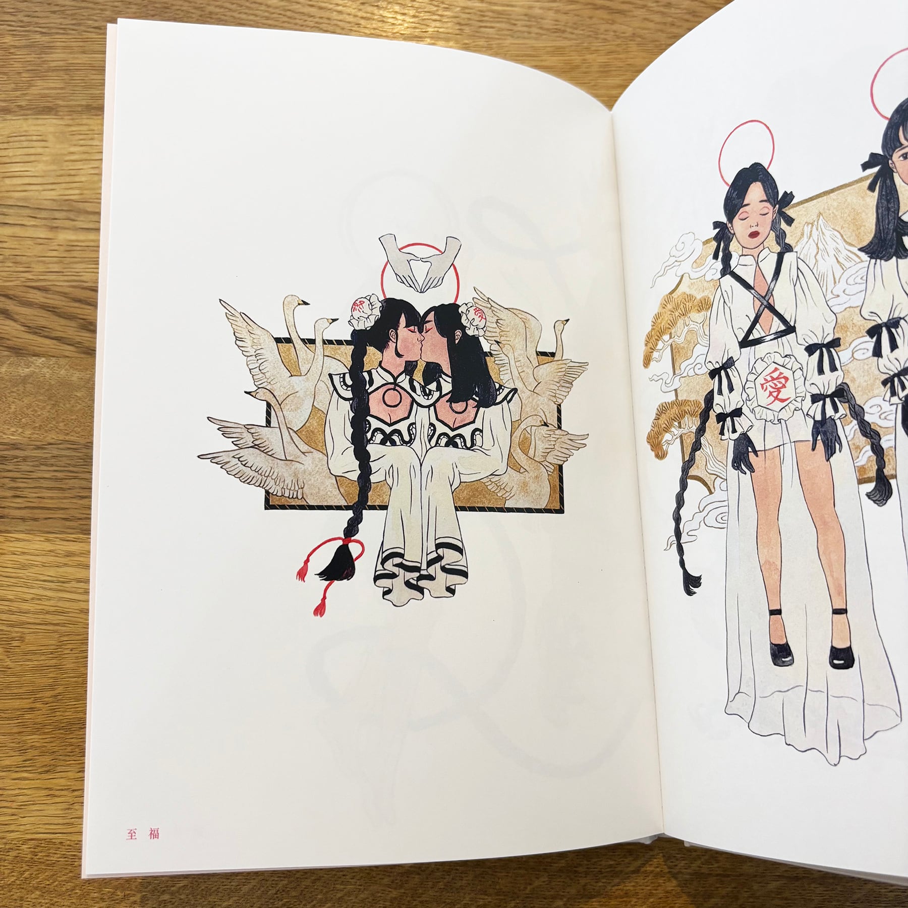 2022年の個展“BEDROOM”では、幸を祝う姿を描いた神聖な雰囲気が印象的で、コロナ禍における科学も道理もない極めて迷信的な社会になっている現実へのささやかな救済となる展示でした。