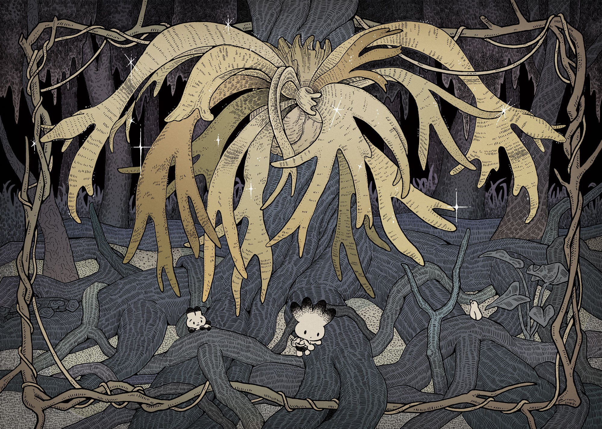以前より、タキタさんが描く深い森の樹々や植物の野生味あふれる描写と、愛らしいキャラクターたちの楽しくほのぼのとした佇まいが織りなすコントラストにとても興味を惹かれておりました。