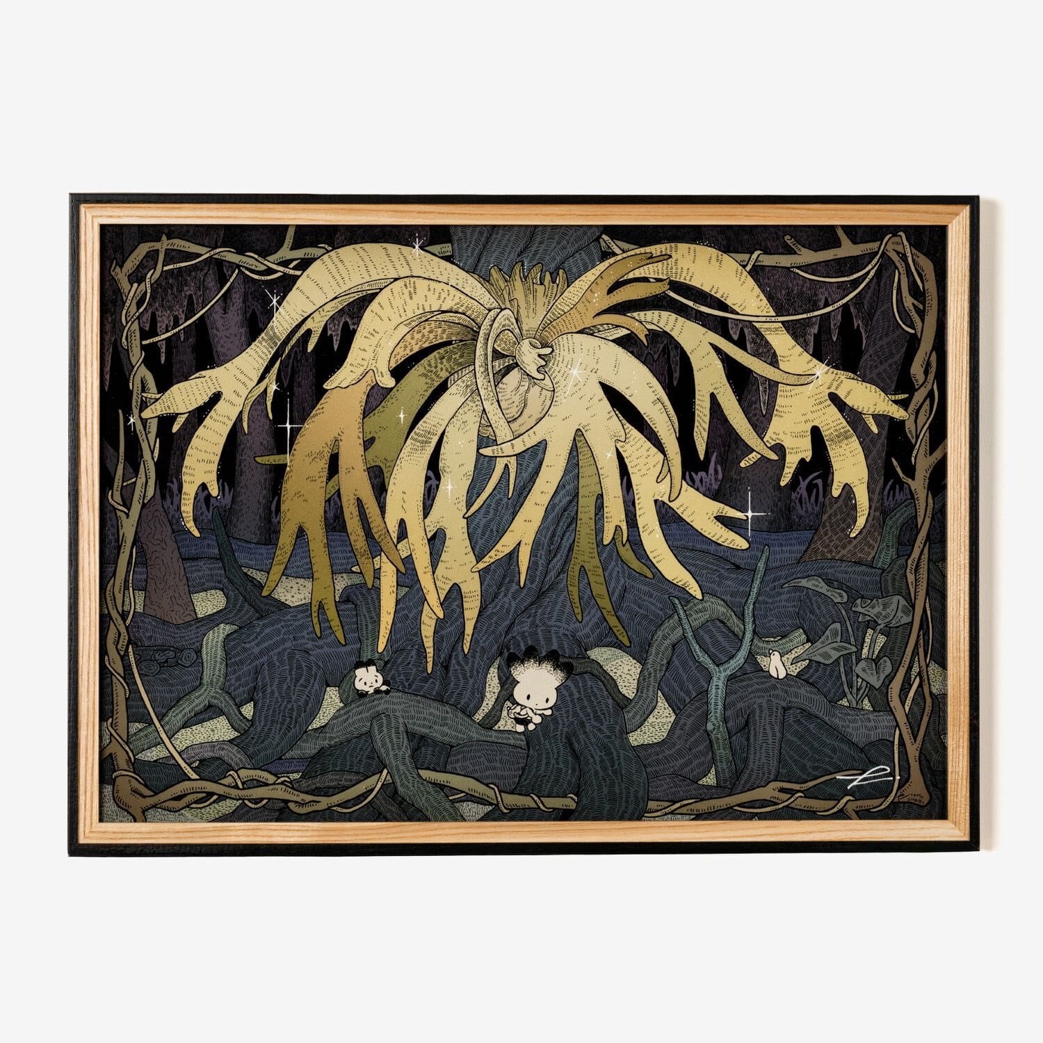 タキタサキ プリント作品「金色のビカクシダ」(額装込/送料込)