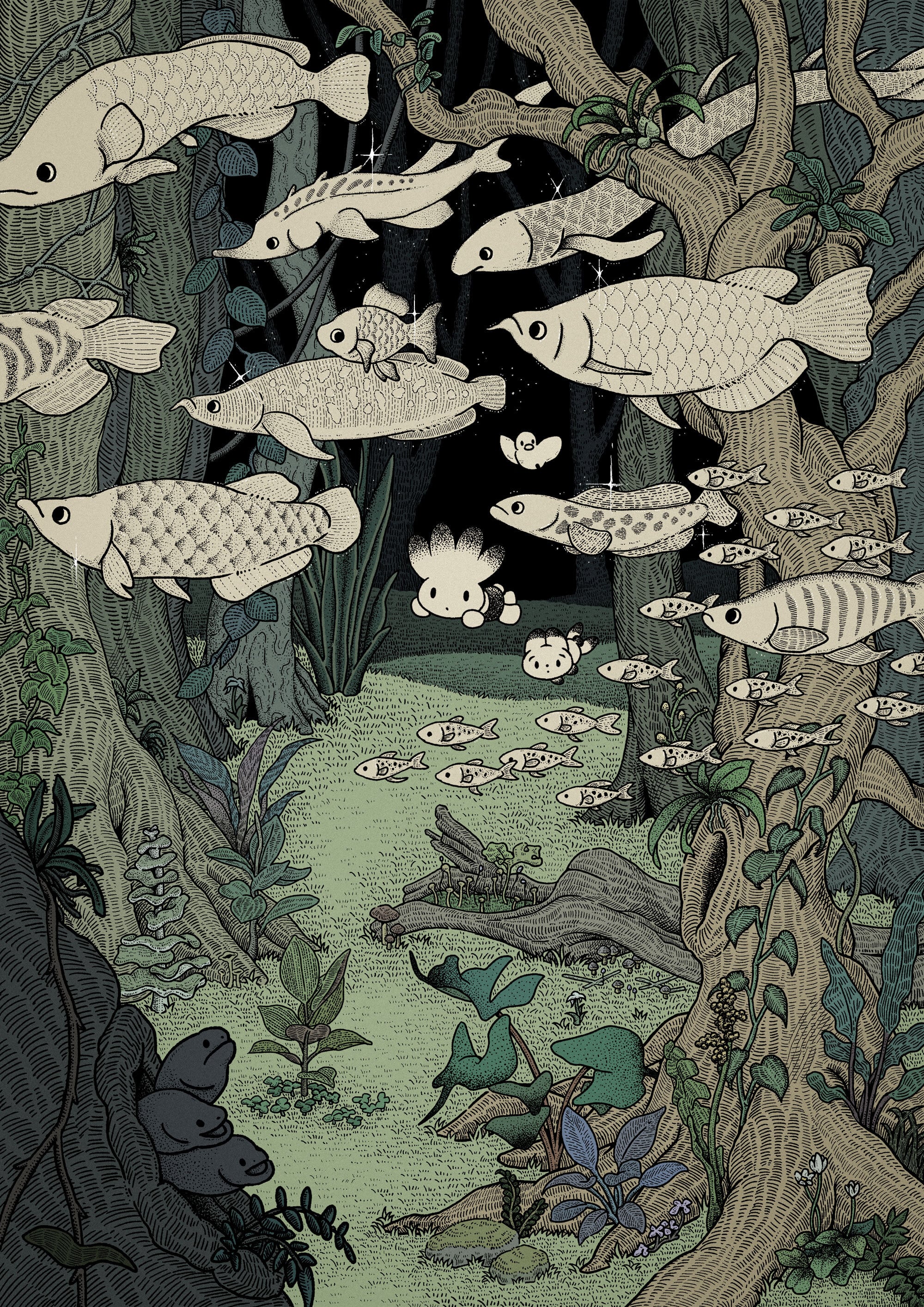 以前より、タキタさんが描く深い森の樹々や植物の野生味あふれる描写と、愛らしいキャラクターたちの楽しくほのぼのとした佇まいが織りなすコントラストにとても興味を惹かれておりました。