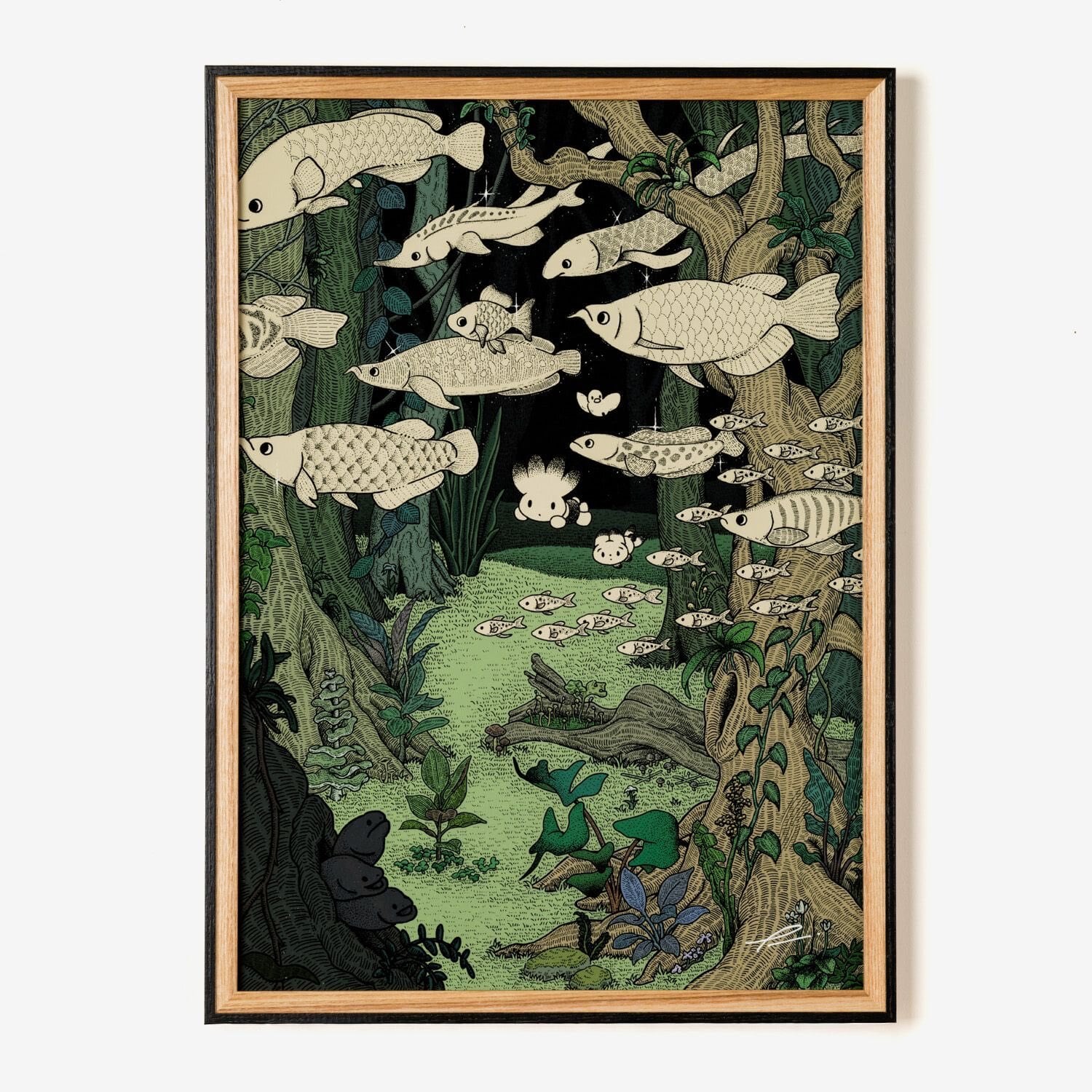 タキタサキ プリント作品「森を泳いだ日」(額装込/送料込)